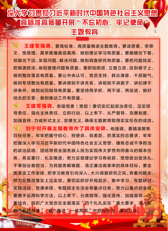 由集團(tuán)黨委副書記、總經(jīng)理劉玲同志宣讀《集團(tuán)黨委開展"不忘初心、牢記使命"主題教育實(shí)施方案》。集團(tuán)黨委書記、董事長王玉輝同志作了"不忘初心、牢記使命"主題教育動(dòng)員講話,對(duì)集團(tuán)系統(tǒng)開展主題教育工作進(jìn)行了安排部署,要求把主題教育與完成本單位轉(zhuǎn)型升級(jí)、項(xiàng)目建設(shè)、生產(chǎn)經(jīng)營等工作任務(wù)結(jié)合起來,切實(shí)把主題教育成果轉(zhuǎn)化為企業(yè)發(fā)展的強(qiáng)大動(dòng)力,推動(dòng)青海物產(chǎn)高質(zhì)量發(fā)展。省委"不忘初心、牢記使命"主題教育第十二巡回指導(dǎo)組組長任正德同志做了指導(dǎo)講話。充分肯定了集團(tuán)黨委的前期工作,認(rèn)為會(huì)議準(zhǔn)備比較充分,有效統(tǒng)一了干部職工的思想,制定的主題教育《實(shí)施方案》操作性強(qiáng),目標(biāo)任務(wù)具體,動(dòng)員講話政治站位高,思想認(rèn)識(shí)深,工作思路清晰。同時(shí),結(jié)合工作組的職責(zé)就落實(shí)主題教育各項(xiàng)任務(wù)講了六點(diǎn)意見。一是聚焦根本任務(wù);二是把握"十二"字總要求;三是緊扣"五句話"總目標(biāo);四是落實(shí)"四個(gè)貫穿";五是抓實(shí)"六項(xiàng)重點(diǎn)"舉措;六是力戒形式主義,嚴(yán)禁主題教育走形式、走過場。