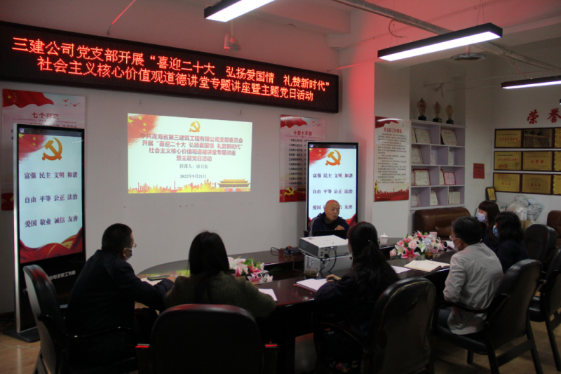 省三建公司黨支部開展“喜迎二十大 弘揚愛國情 禮贊新時代”社會主義核心價值觀道德講堂專題講座暨主題黨日活動