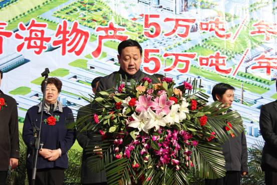 此次投產慶典儀式由青海省國資委副主任毛占彪主持,青海省委常委、副省長駱玉林、青海省人大副主任桑杰、青海省經濟委員會主任、青海省政府國資委副主任吳海昆、西寧市政府副市長許國成、中共大通縣縣委書記吳海、大通縣人民政府縣長韓生才、青海省物產集團總公司總經理、青海物產工業投資有限公司董事長王玉輝、青海省物產集團總公司黨委書記白家林以及省、市、縣有關部門的負責同志參加了投產慶典儀式。